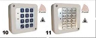 Achtung: Die Funk-Code-Tastaturen sind kompatibel zur Rolltorsteuerung RTS -16 und zu